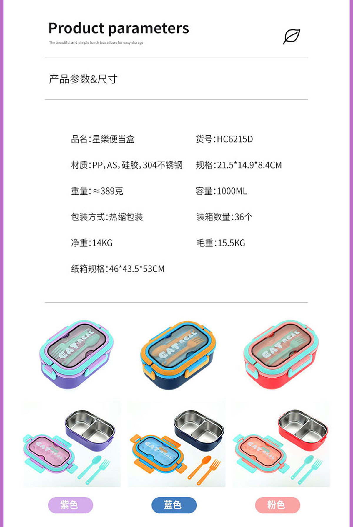 Size: SWY-HC6215A(三格PP款):215*149*71mm/1000ml