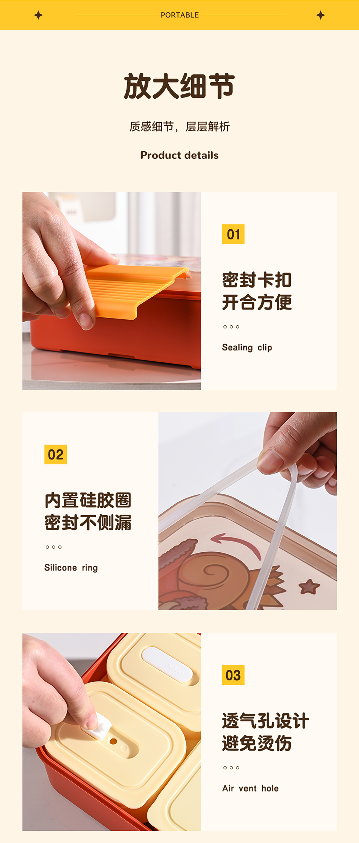 Size: 221*151*70mm/大內盒470ml/小內盒165ml*2